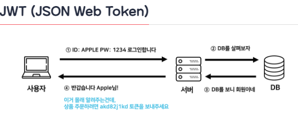 - JWT는 토큰에 대한 기본 정보와 전달할 정보 및 토큰이 검증됬음을 증명하는 서명 등 필요한 모든 정보를 자체적으로 지니고 있다.