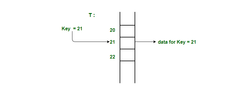 간단한 테이블을 만들어서 보자면 key의 값을 주소로 사용하여 만드는 테이블을 말한다. 만일 key가 30이라면 배열의 인덱 30에 데이터를 저장시켜 놓는 방법이다 .